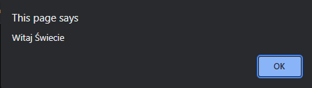 alert("Witaj Świecie");Efekt końcowy wygląda tak: