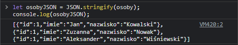 const osoba1 = new Osoba("Jan", "Kowalski", "12.03.2001");Możemy teraz wyświetlić obiekt: